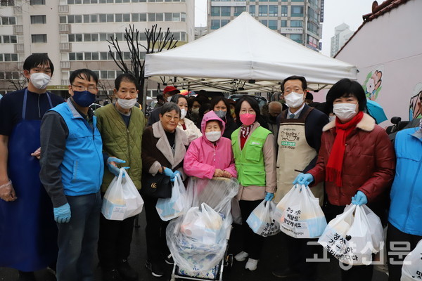 지난 14일 문촌마을 9단지 (사)장애인권익지원협회 고양시지부(회장 윤창준)에서 고양축산농협(조합장 유완식)이 함께 하는 아름다운 세상 설맞이 떡국 나눔 행사가 개최되었다. 오전 11시부터 시작되는 행사였지만 이른 시간부터 많은 주민들이 모여들며 큰 관심을 보였다.