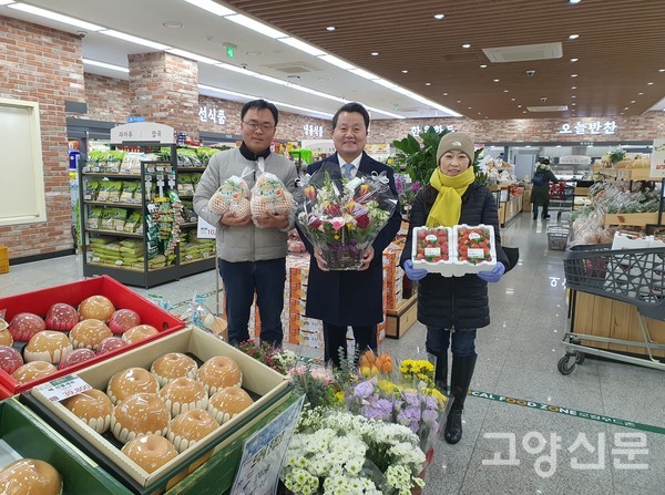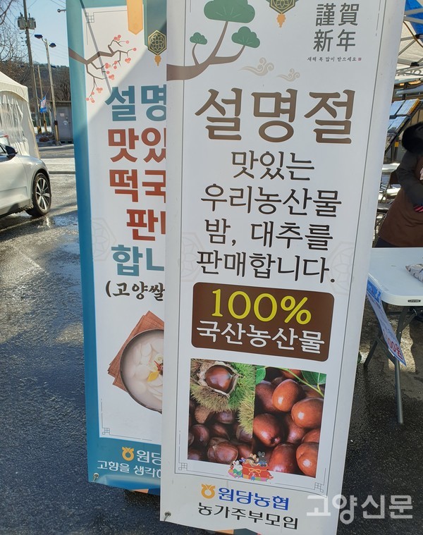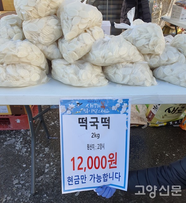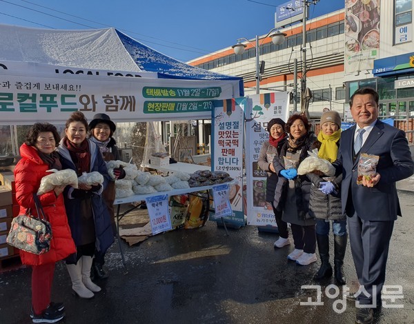 [고양신문] 원당농협(조합장 강효희) 주부봉사단인 고향을 생각하는 주부들의 모임(회장 정혜선)과 농가주부모임(회장 최다남) 임원들은 설날을 앞두고 지난 19일부터 21일까지 3일간 로컬푸드 직매장(원당역점, 성사점) 두 곳에서 이웃사랑 기금 마련을 위한 떡국떡과 밤, 대추 판매장터를 열었다. 이날 행사에 강효희 조합장, 천경자 복지과장도 참석했다.