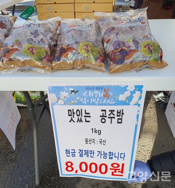 이번 장터에는 농협쌀 80kg으로 떡국떡을 만들었고, 공주밤 150개(1kg), 경산대추 60개(500g)가 성황리에 판매됐다.
