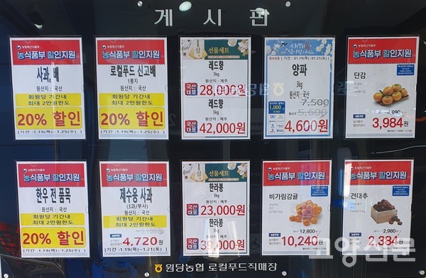 한편 로컬매장에서는 설날 장터 농림축산식품부 할인지원행사(제수용 사과, 한우 전품목, 비가림 감귤, 단감 등)로 최대 20%까지 할인을 해서 장바구니를 풍성하게 채워주었다.