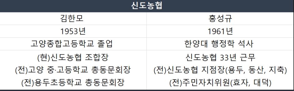 [고양신문] 신도농협 조합장 선거는 김한모 현 조합장과 홍성규 전 상무의 2파전으로 예상되고 있다. 3선에 도전하는 김한모 현 조합장은 향후 창릉신도시 조성에 맞추어 조합의 발전을 도모한다는 비전을 내세운다. 김 조합장은 ”3만8000가구가 입주하는 창릉신도시 내로 로컬푸드점과 지점을 확장하는 것을 구상하고 있다“고 밝히고 있다.
