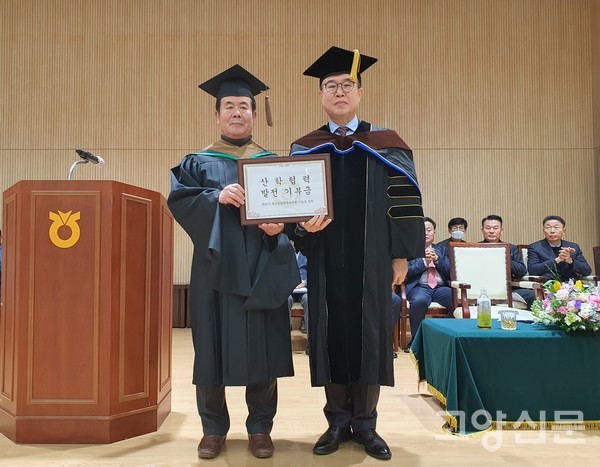이어서 26기 수료생 일동의 정성을 담은 발전기금을 장순재 학생회장이 이상욱 총장에게 전달했고, 동문회 가입금도 박경혜 총동문회장에게 전달했다.