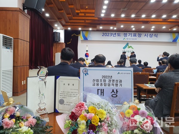 산림조합중앙회는 2022년도 한 해 동안 당기순이익 10억원 이상 조합에게 ‘경영성과’ 표창을 하는데, 고양시산림조합의 당기순이익은 34억300만원으로 이번에 대상을 받게 됐다. ‘금융업적평가 대상’은 지정한 항목들에서 전체조합 중 우수한 성적으로 높은 당기순이익을 기록한 조합에 수여한다. 고양시산림조합은 적극적인 신규예금 유치를 통한 수신 금액 증가를 보였고, 여신 관련해 전체 대출금액 중 부실대출 비중인 자산건전성 비율에서 매우 안정적인 비율을 유지해 수상하게 됐다.