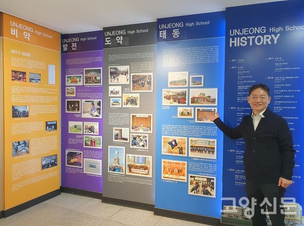 피 교장은 “운정고 교사 시절 때 학생들이 인성 좋고 학습의욕이 넘치던 모습이 와 닿았다. 학교운영에 맞게 교사, 지역대표, 학부모, 교육청이 서류와 면접 심사하는 ‘공모교장’에 지원해서 지금에 이르렀다”고 한다.
