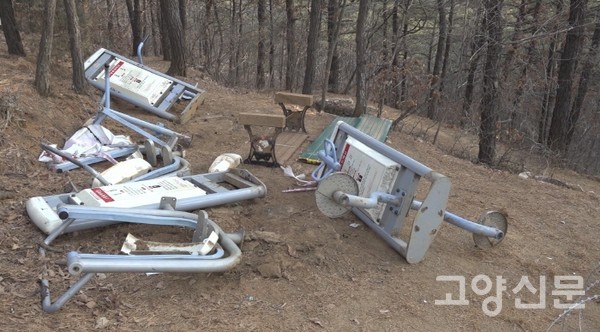 결국 아쉽지만 황룡산 정상까지 올라가는 걸 주민들이 포기해야 한다는 게 고양시의 설명인 셈이다. 실제로 시는 황룡산 정상 부근에 설치돼 있던 체육시설과 벤치 등의 시설물도 일체 철거하는 조치에 들어갔다. 아울러 고양누리길 홈페이지에도 공지를 띄워 능선길 폐쇄를 알리고, 능선길 삼거리에서 일산동고·탄현근린공원 방향만 이용해 줄 것을 권고했다.