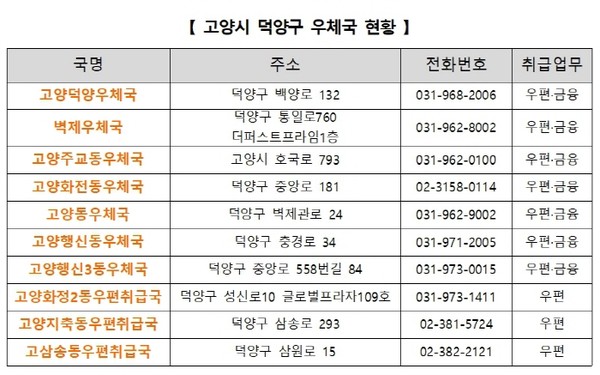 고양덕양우체국은 공사기간 동안 인근 우체국 인원 보강 등을 통해 주민 불편을 최소화한다는 계획이다. 고양덕양우체국 관계자는 “능곡동우체국을 시작으로 덕양구 관내의 노후우체국에 대한 추가적인 재건축이 순차적으로 이뤄질 수 있도록 우정사업본부와 협력할 것”이라고 말했다.
