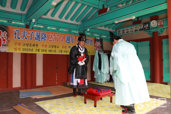 종헌관을 맡은 과천향교 박명환 전교는 “오랜 인연을 잊지 않으시고 저에게 종헌관을 하게 해주셔서 감사하다”며 “다른 어느 향교보다도 더욱 전통을 지켜나가는 모습인 고양향교의 석전 봉행에 종헌관으로 참여해 매우 기쁘다.”고 말했다.