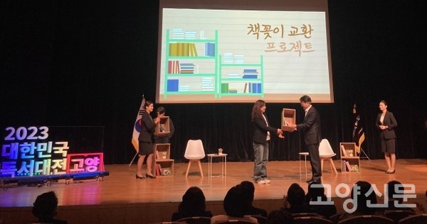 선포식 퍼포먼스로, 고양시장과 시민이 추천 책을 소개하고 서로의 책을 교환하는 ‘책꽂이 교환 프로젝트’가 눈길을 끌었다. 고양시장은 앵거스 플래처의 『우리는 지금 문학이 필요하다』를, 시민대표 이수재씨는 101세 화가 모지스 할머니의 잠언집 『인생의 봄에는 할 일이 참 많습니다』를 소개하는 독서 편지를 낭독한 후 서로의 책꽂이를 교환했다.