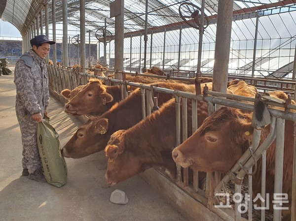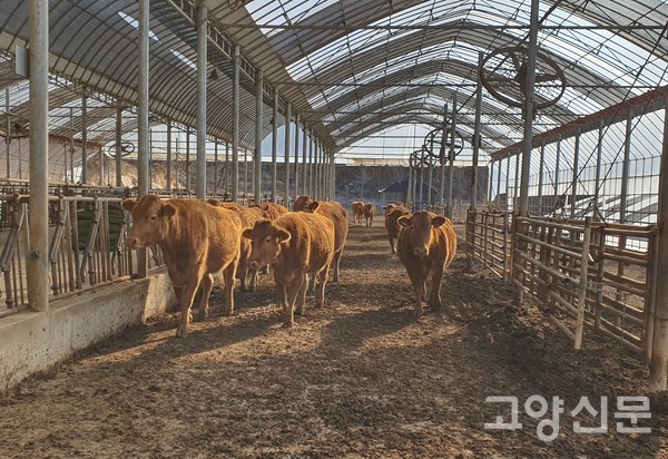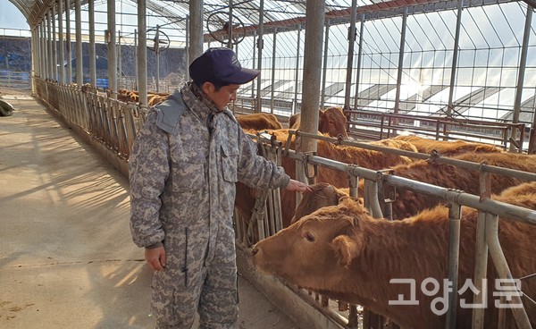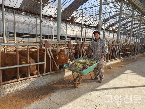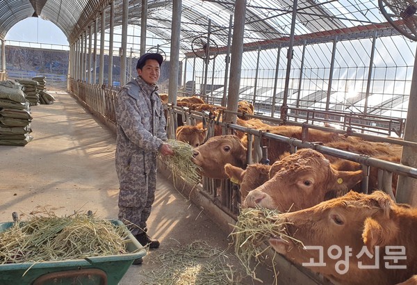 [고양신문] 성승원(40세) 대표가 운영하는 청솔목장은 일산동구 성석동 야산자락 아래에 있다. “어릴 적부터 햄스터, 거북이 등 동물 키우기를 좋아했다”는 성 대표는 이곳 1000여 평의 축사에서 한우 120마리를 키운다. 소들이 지내기에 넉넉한 공간이다.
