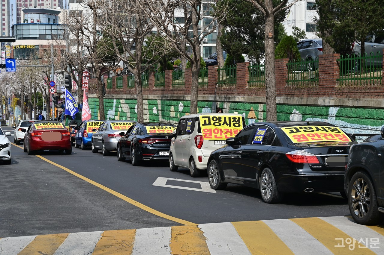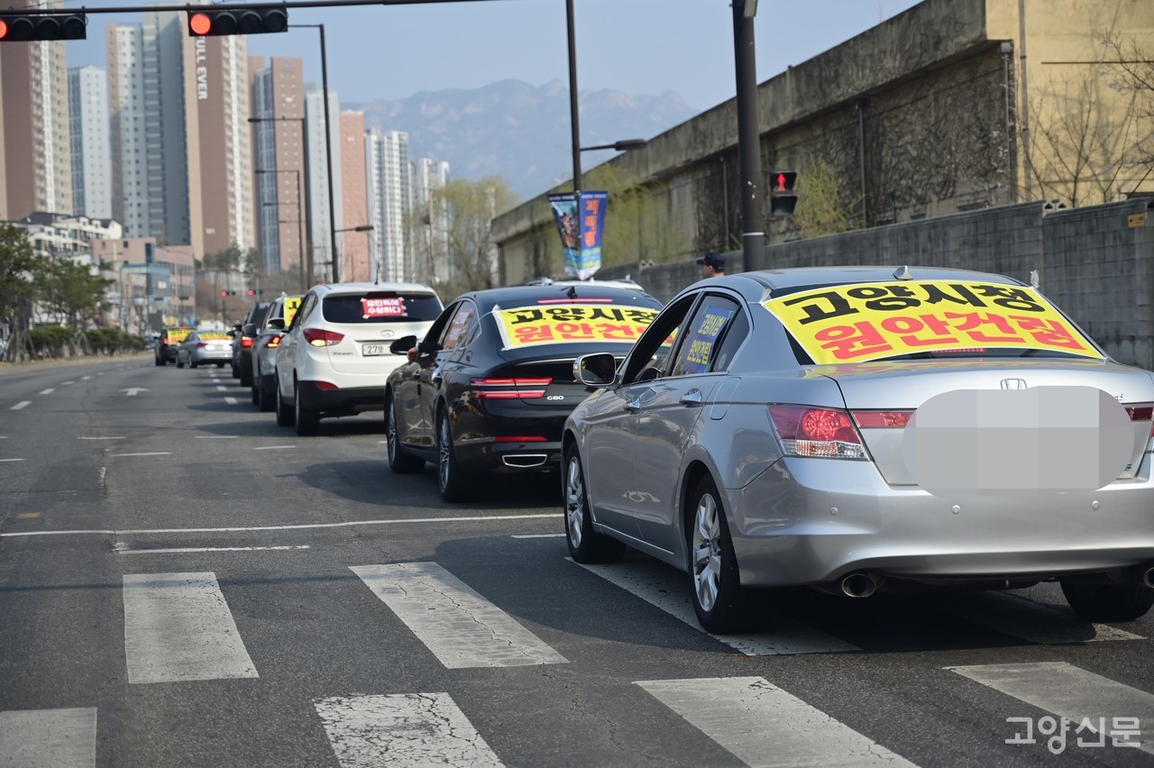 고양어울림누리에서 출발해 원흥역, 삼송역, 지축역 등을 지나 도래울마을 인근에서 마무리 된 이날 시위는 덕양구 21개 행정동 중 6개 동을 돌며 시청 원안 존치 필요성을 알렸다. 차량시위에 참여한 주민들은 저마다 ‘고양시청 원안건립’, ‘요진특혜 수상하다’등의 문구가 적힌 팻말과 현수막을 차에 부착하고 이전 반대 목소리를 높였다.