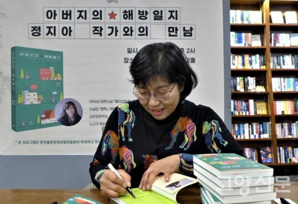 [고양신문] 『아버지의 해방일지』의 정지아 작가가 1일 한양문고 주엽점에서 독자와의 만남 행사를 가졌다. 주최 측은 “요즘 핫한 작가여서인지 신청 마감이 몇 시간 만에 끝났고, 수십 명의 대기자들이 몰렸다”고 전했다. 강연은 기대 이상으로 흥미진진했고 유쾌한 감동이 있었다.