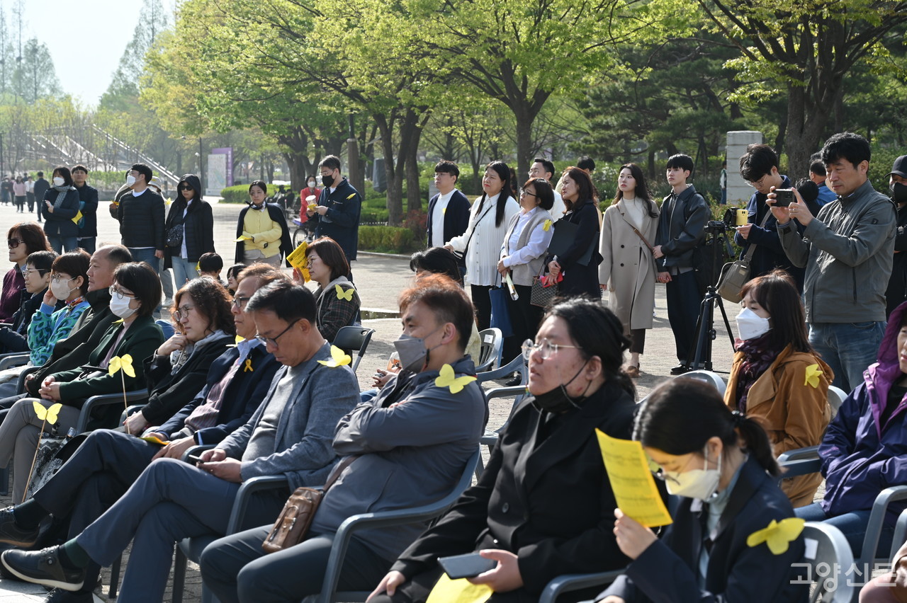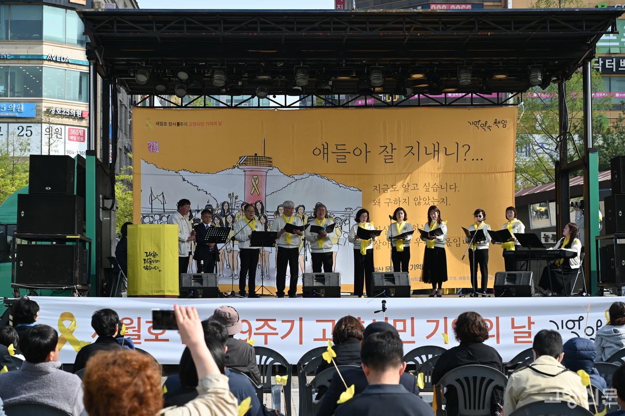 최용석 총감독(엠파티아 보컬앙상블 예술감독 겸 지휘자)이 연출한 이날 행사는 지역에서 활동하는 아티스트인 헬로유기농과 라라밴드, FINE의 추모 버스킹에 이어 △(사)행복한미래교육포럼 ‘살리고 합창단’ △2016년부터 소외된 이웃과 함께 노래해 온 ‘공감합창단’ △2014년부터 세월호 진상규명 에 참여한 ‘나들목일산교회합창단’ △2001년 창단되어 왕성한 활동을 벌이고 있는 ‘일산 유스오케스트라’ 등의 추모 공연이 이어졌다.