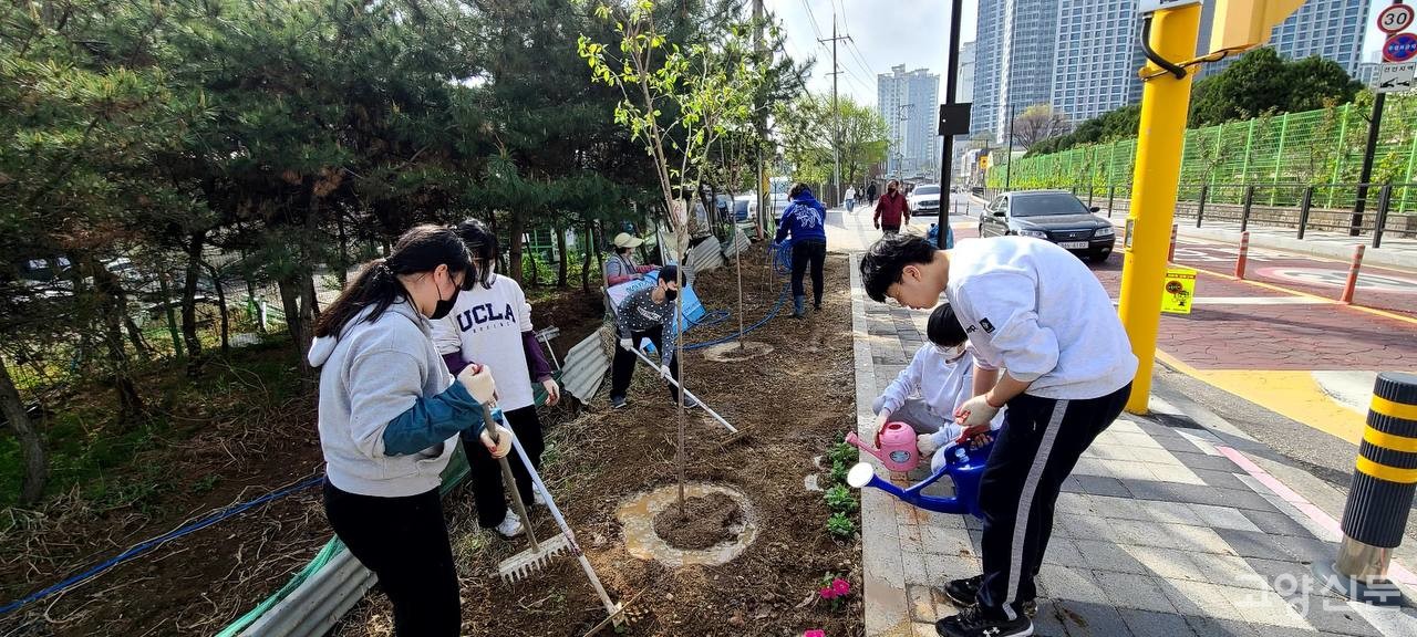 [고양신문] 일산도시재생에 참여하는 주민들이 봄을 맞아 나무심기 행사를 가졌다.