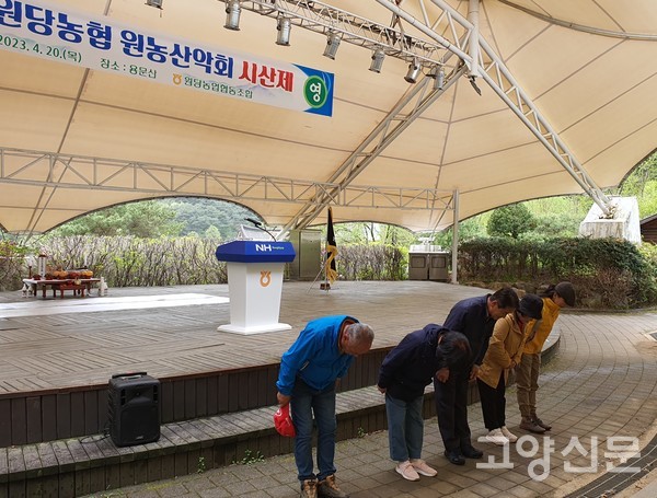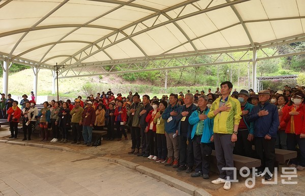 [고양신문] 원당농협(조합장 이창림) 원농산악회(회장 정혜선)는 20일 양평군 용문산에서 올 한해 안전한 산행을 기원하는 시산제를 천경자 복지과장 사회로 지냈다. 조합원과 금융고객, 직원 등 300여 명이 버스 8대에 나눠 타고 집결지인 성사체육공원을 출발해 용문산 야외공연장으로 향했다.