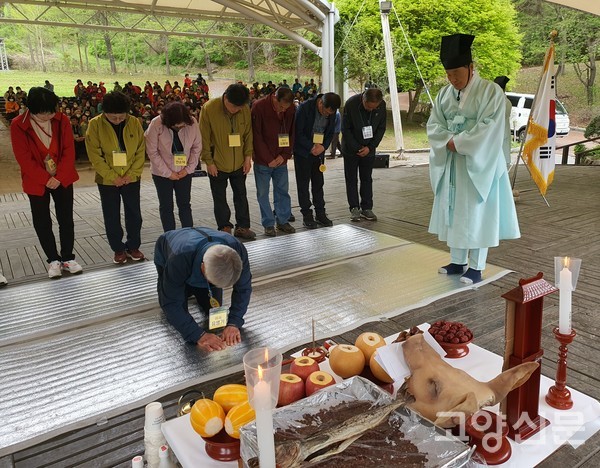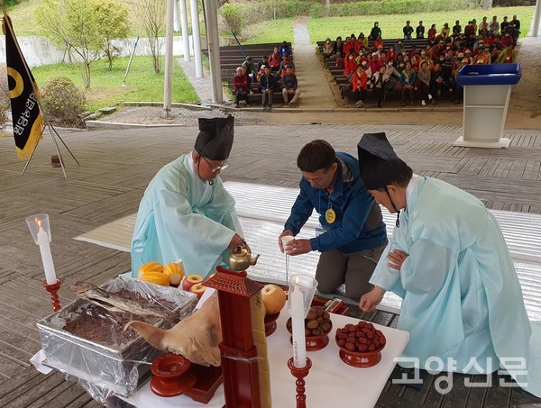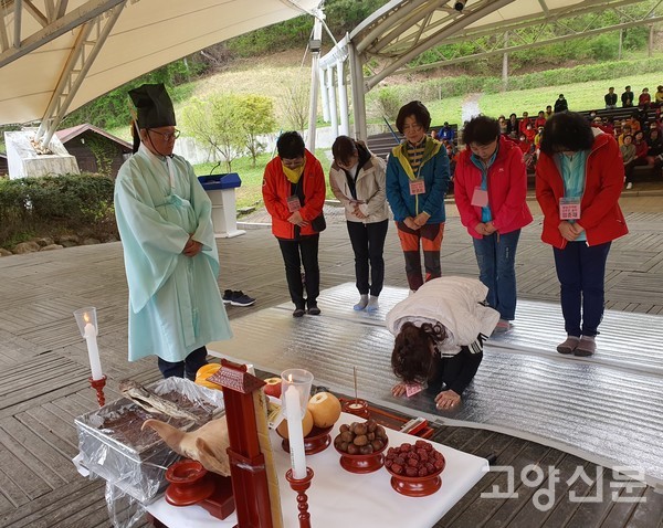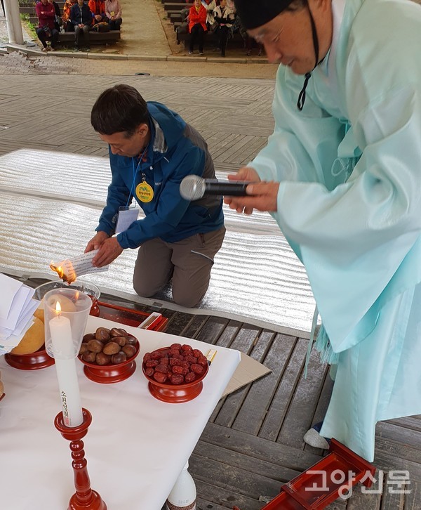 이날 시산제는 이창림 조합장 취임 후 첫 공식일정으로, 고양유림이 시산제를 진행했다. 산신을 모시는 의식인 강신례부터 제단 앞에서 축문을 불태우는 소지례까지 시종일관 경건하게 정성을 담았다.
