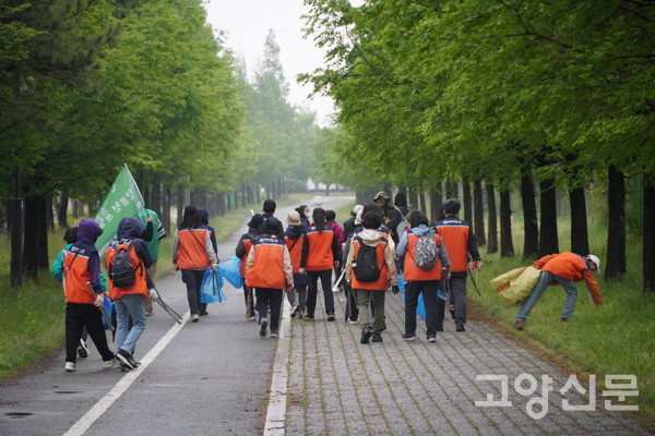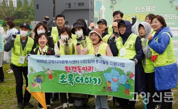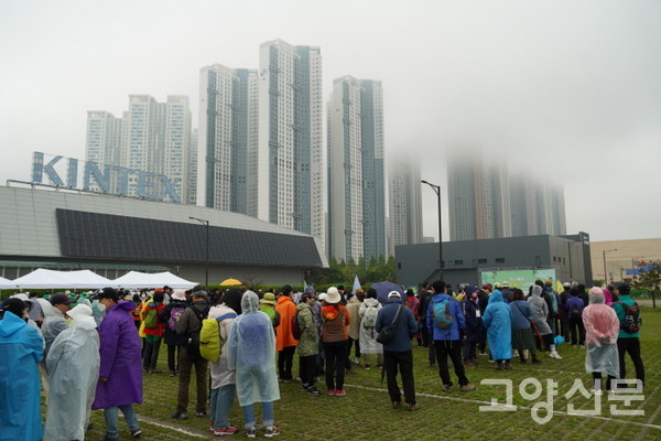 [고양신문] 지속가능한 생태도시를 꿈꾸는 고양의 시민들이 한자리에 모여 “킨텍스 남쪽 한류천 인근에 탄소제로 생태숲을 만들자”는 비전을 공유하는 축제가 열렸다. 29일 오전 킨텍스 야외전시장에서 시작된 ‘탄소제로 고양숲 만들기 시민한마당’ 행사에는 빗방울이 흩날리는 궂은 날씨에도 600여 명의 시민들이 참석해 기후위기 대응행동 실천에 동참했다.