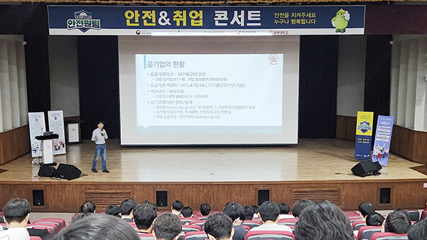 이날 행사는 사회적 관심이 큰 ‘산업안전보건’과 ‘취업진로’란 두 가지 주제를 연계해 산업안전보건교육, 공기업 취업특강, 안전보건 전문가와 토크 순으로 진행됐다. 건축토목, 전기전자자동차 등을 전공하는 대학생(예비산업인력)에게 노동부, 공단, 대한산업안전협회, 대한산업보건협회 등이 현장에서 직접 산업안전보건과 취업에 관한 정보를 제공하고 피드백을 받는 시간도 함께했다.