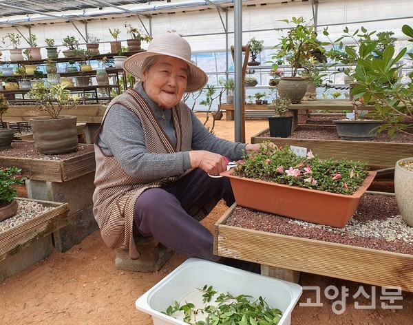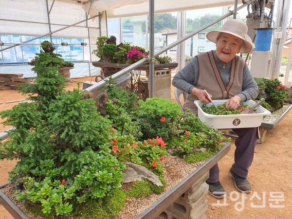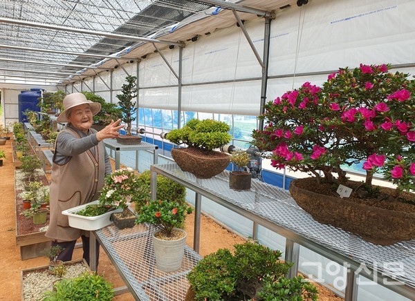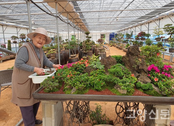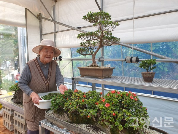 [고양신문] 50여 년간 철쭉 분재에 열정을 쏟고 있는 박을순 호산나마을 대표(89세)가 덕양구 행주내동 충장공원 인근에서 덕양구 고골길 181(대자동 764-1 아름다운 동행 카페 전용 전시장)로 이전 전시를 한다.