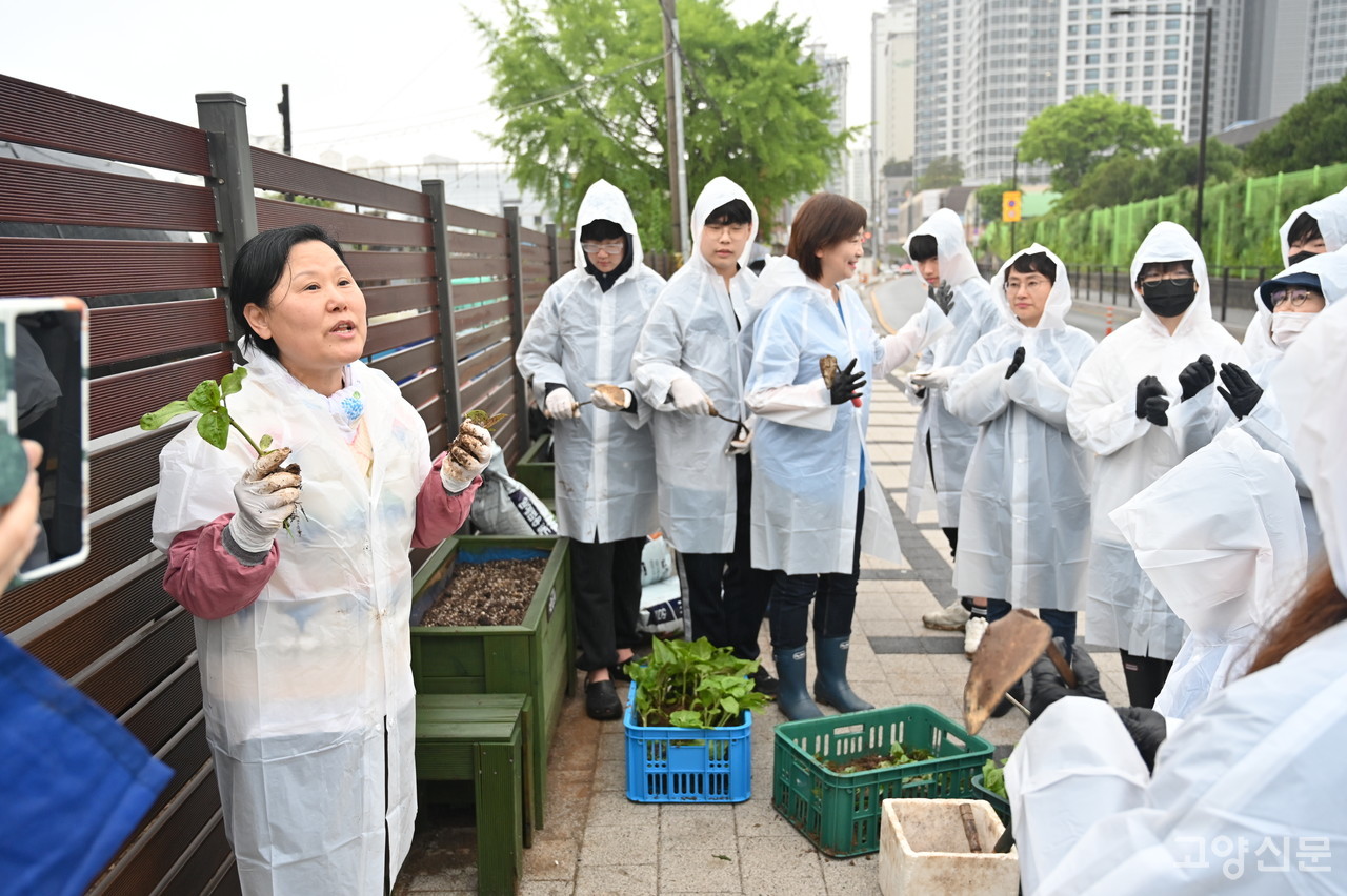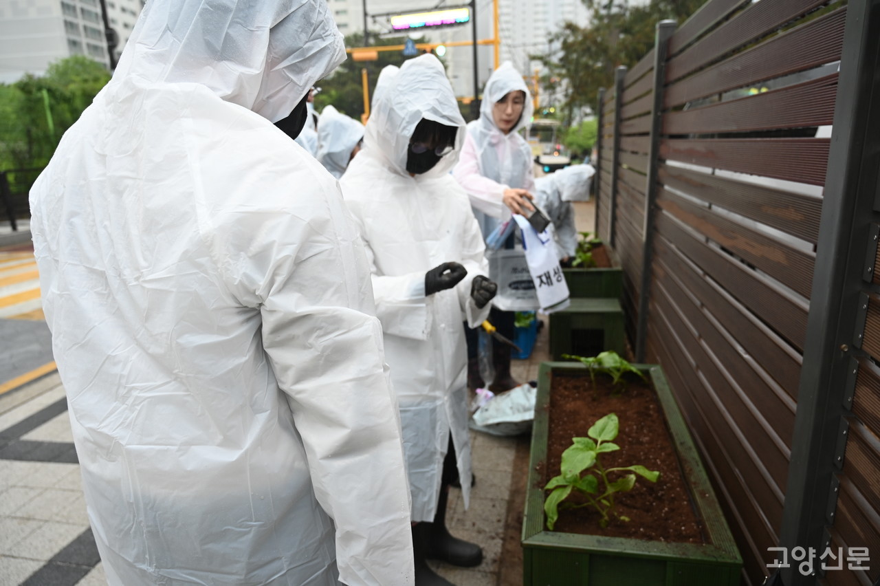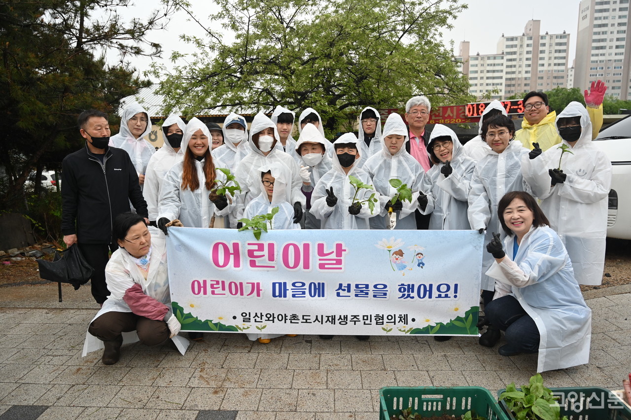 이날 비가 많이 오는 악천후 속에서도 일산와야촌도시재생주민협의체 소속 주민 20여명은 일산농협창고 뒤편에 마련한 텃밭에서 직접 재배한 미니해바라기 모종을 챙긴 뒤 일산역에서 일산초등학교로 이어지는 인도에 설치된 화단에 직접 꽃을 심었다. 지역구 김해련 시의원과 신인선 시의원(이상 더불어민주당) 또한 우비를 입고 함께 꽃을 심으며 주민들과 즐거운 시간을 보내기도 했다.