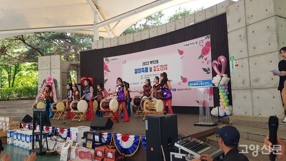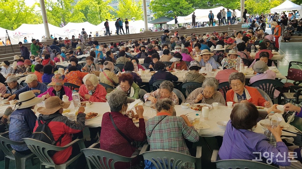 [고양신문] 백석2동 주민자치회(남신현 회장), 새마을부녀회(황영순 부녀회장)가 공동주최하고 백석2동 행정복지센터가 후원하는 어버이날 기념 알미축제 및 효잔치 행사가 13일 백석동 알미공원에서 열렸다.
