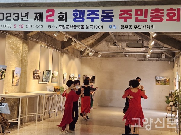 12일 토당문화플랫폼 능곡1904에서 행주동주민자치회가 2023년 주민총회를 개최했다. 오후 2시부터 마을의제로 나온 7가지행사 투표 및 설문조사를 진행하고 주민총회 축하 식전공연으로 행주동의 문화강좌 댄스팀과 모델워킹팀 그리고 러시아에서 온 젠꼬바스베틀라나가 섹소폰연주를 선보였다.