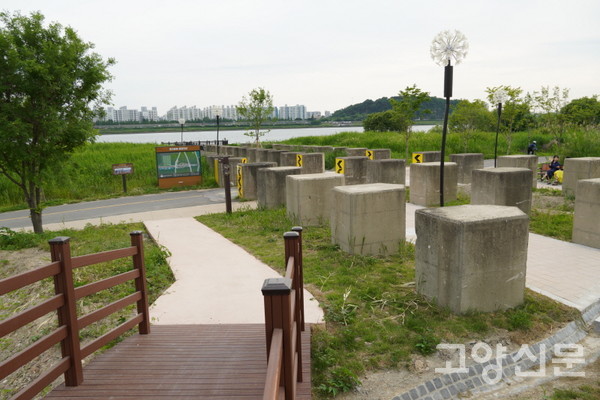 [고양신문] 고양대덕생태공원을 가로지르고 있는 대전차방어용 콘크리트 군사시설인 ‘용치’ 주변에 쾌적한 공원이 만들어졌다. 육중한 콘크리트 덩어리가 3열 종대로 길게 박혀있는 용치 자체는 손대지 않고, 대신 주변에 벤치와 물놀이터, 초화원, 갯골수로, 징검다리 등을 조성했고, 주차장도 함께 마련했다.