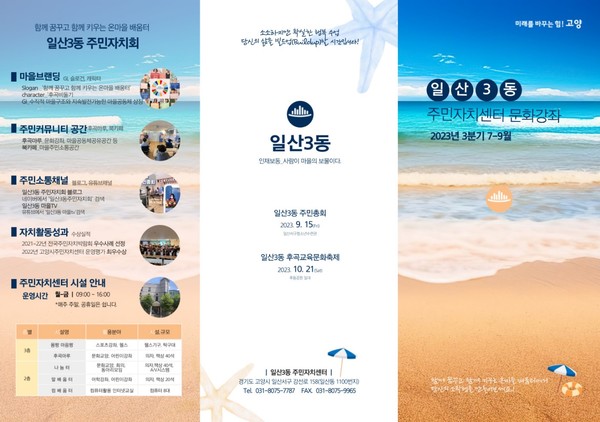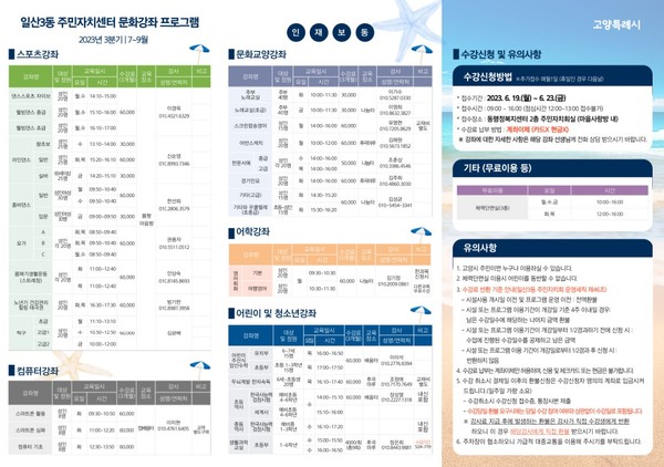 한편, 3분기 문화강좌 접수는 일산3동 행정복지센터 2층 주민자치회에서 선착순 방문 접수로 실시 예정이며, 자세한 사항은 고양시청 홈페이지와 주민자치회(031-8075-7787)로 문의하면 된다.