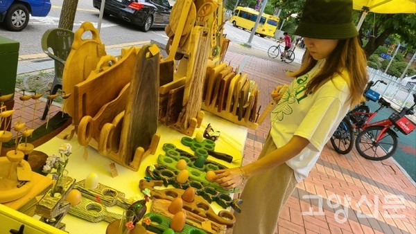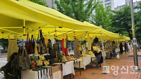 [고양신문] 올해 3년차를 맞이하는 일산동구의 ‘강촌 손길마켓’ 첫 장터가 8일 풍동 벚나무 공원에서 성황리에 펼쳐졌다. 초록색 녹음이 짙은 초여름날 공원 입구에 만들어진 플리마켓은 외국의 벼룩시장이 열린 공원처럼 여유롭고 멋진 풍경이다. 삼삼오오 아이들의 손을 잡고 방문한 가족부터 동네 산책을 나오신 어르신, 좋은 수제품 물건을 사러 온 주부까지 판매 부스마다 다양한 전시품을 구경하는 재미로 시간 가는 줄 몰랐다.