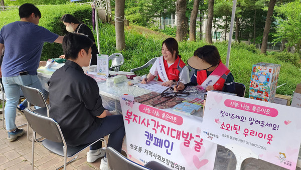 송포동 지역사회보장협의체가 지난 6월 10일 오후, 송포동 호미걸이공원에서 ‘찾아가는 복지상담소’및 복지사각대 발굴 캠페인을 진행했다. 지역 주민들을 대상으로 미처 발견하지 못한 복지사각지대 찾기와 지역 내 복지 인구의 맞춤형 복지서비스를 지원하고자 진행한 이번 행사는 문촌7종합사회복지관과 일산서구보건소와 합동으로 이루어졌다.