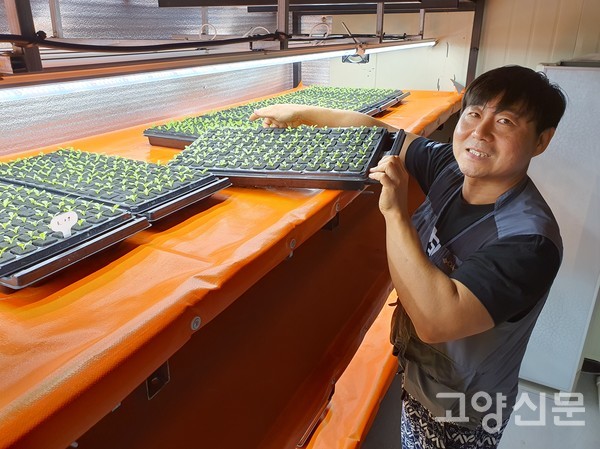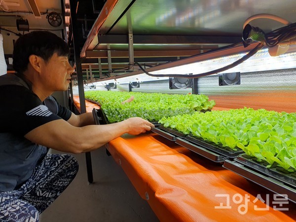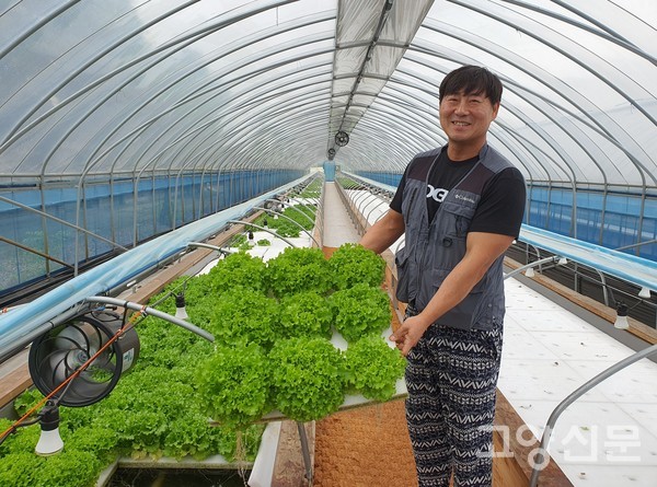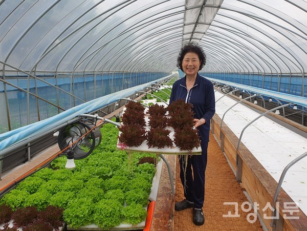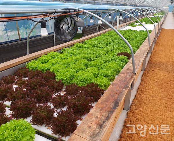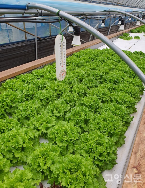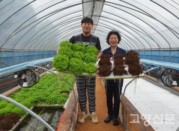 [고양신문] 김주봉(45세) 대표는 일산서구 법곳동 송포농협 도정공장 맞은편에서 아쿠아 포닉스(물고기 양식에 사용하는 물로 채소를 키우는 농법)로 유럽형 채소들을 재배하고 있다. 그는 “기술 계통 솜씨가 좋았던 아버지가 아쿠아 포닉스 농법 재배 틀을 모두 짜놓았다"라며 "이를 어머니(박명숙)와 잘 이어가겠다”는 각오를 말했다.