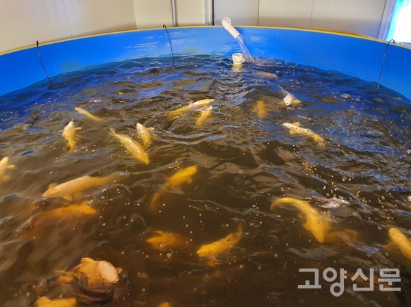 그는 "2년 전 면역성이 강한 물고기 치어(비단잉어, 향어)를 1000마리 넣었는데 300마리는 중간에 적응을 못했다"라며 "해양수산자원연구소 이동훈 박사의 자문을 받고 미생물을 공급하면서 회복했다"고 한다.