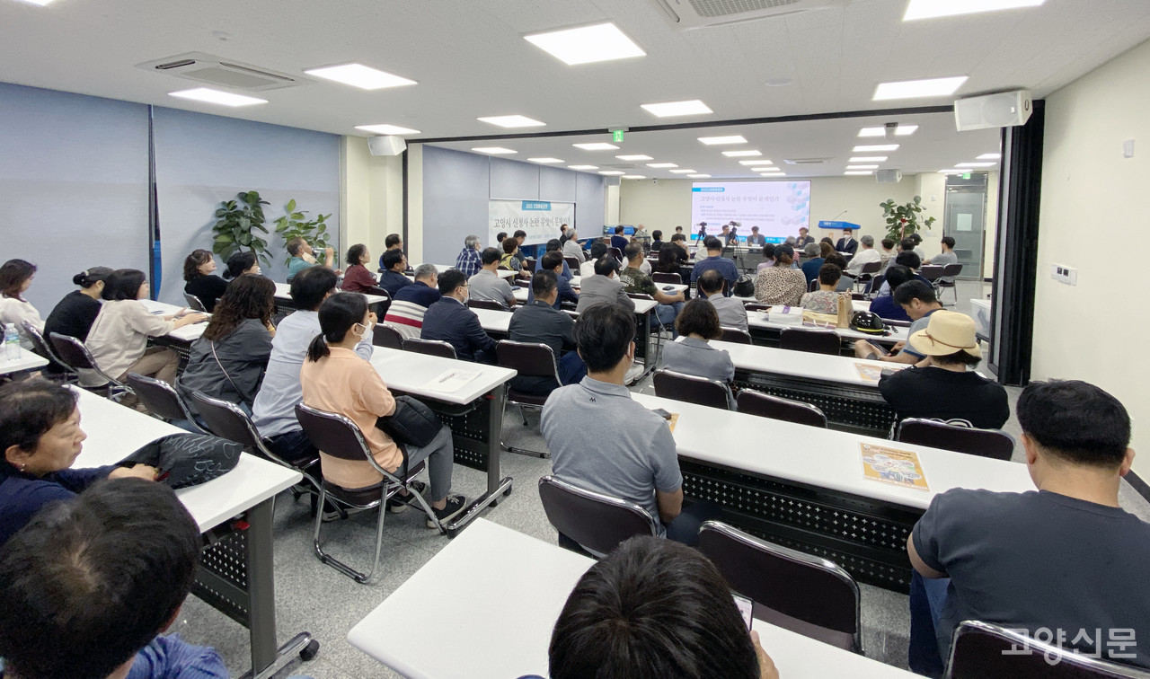 덕양과 일산, 진보와 보수, 여당과 야당 간의 문제에서 벗어나 민주주의와 자치 관점에서 이번 사태의 근원적인 문제를 살펴보는 자리가 마련됐다. 12일 고양신문이 주최한 ‘고양시 신청사 논란 무엇이 문제인가’ 토론회에서는 단순히 시청부지를 어디로 정할 것인가를 논하는 수준을 넘어 민선 8기 이후 1년간 펼쳐진 신청사 논란 과정에 대한 문제점을 짚어보고 현 상황에 대한 진단과 해법을 모색했다. 정책전문가이자 현재 행신2동 주민자치회 활동을 하고 있는 오건호 내가만드는복지국가 정책위원장이 발제를 맡은 이날 토론회는 현장에 약 100여 명의 시민과 주민자치 활동가, 지역정치인 등이 참석했으며 고양팟 유튜브 생중계를 통해서도 1000명이 넘는 시청자들이 참여해 많은 관심을 보였다.