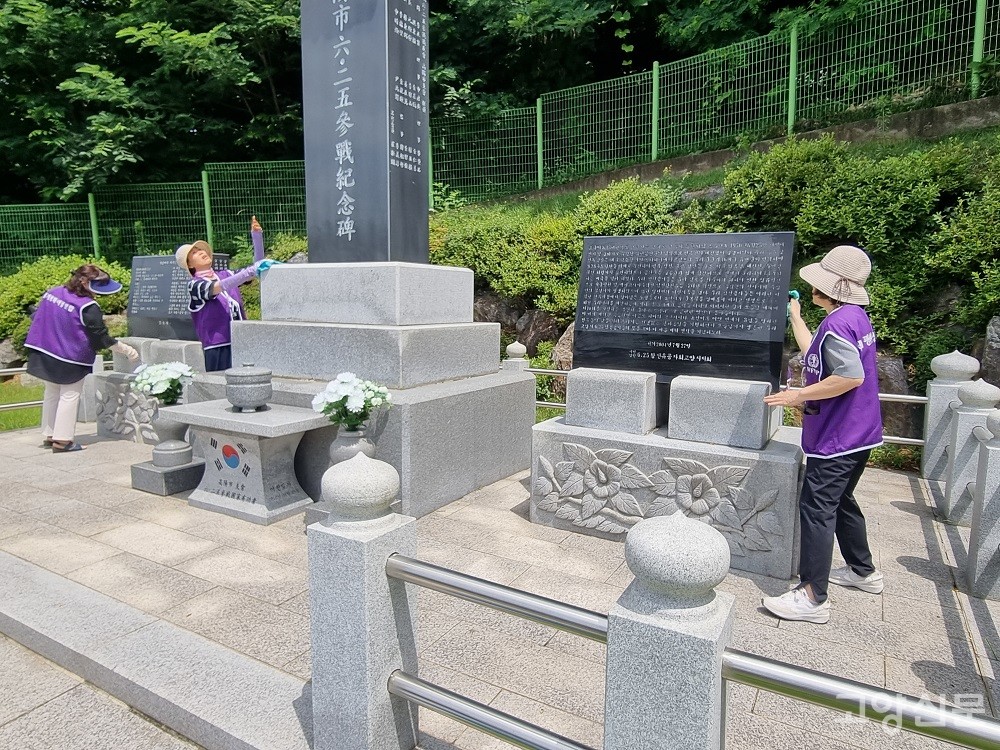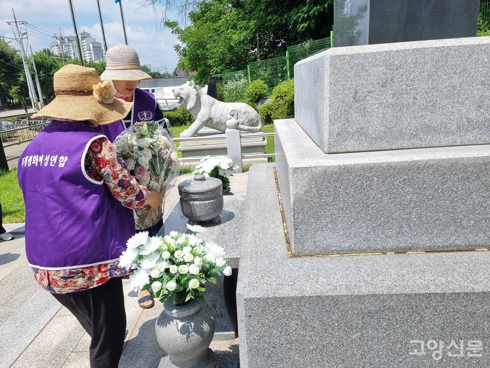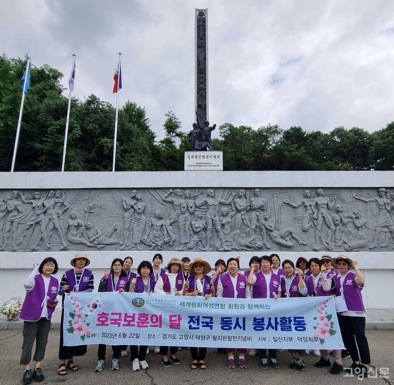 [고양신문] 6월 호국보훈의 달을 맞아 지난 22일 세계평화여성연합회 일산지부(임태옥 지부장), 덕양지부(박영자 지부장) 공동주관으로 고양시 필리핀 참전비(덕양구 관산동 158-8)에서 여성연합 한국,일본 등 회원 25명이 함께 참여한 가운데 봉사활동이 펼쳐졌다.