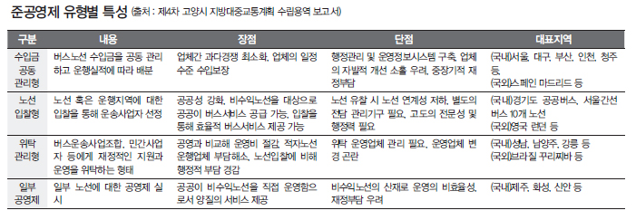 이러한 문제를 보완하기 위해 등장한 대안이 현재 경기도가 도입하고 있는 ‘노선입찰형 준공영제’다. 이는 공공이 노선권을 가지게 됨에 따라 공공성을 강화할 수 있고 입찰 경쟁에서 우위를 점하기 위해 업체가 자발적인 경영 효율화를 시도하게 한다는 장점이 있다. 다만 제도적 한계는 여전한데 경기교통공사 측에 따르면 대부분의 노선이 경쟁이 아닌 단독입찰인데다가 KD운송그룹 같은 대형 운수회사가 대부분을 차지하다 보니 사실상 입찰을 통한 경쟁효과는 기대하기 어려운 것으로 나타났다.