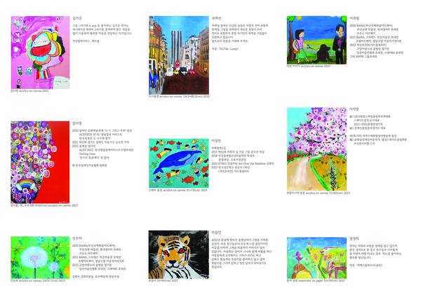 봄햇살 회원인 김가은, 김다영, 신수아, 유하선, 이상민, 이승민, 이유림, 이지영, 장연지, 조건, 최명은 작가의 작품 33점과 멘토작가 김지선, 김행규, 허영, 후원작가 박수영 작가의 작품도 함께 만날 수 있다.