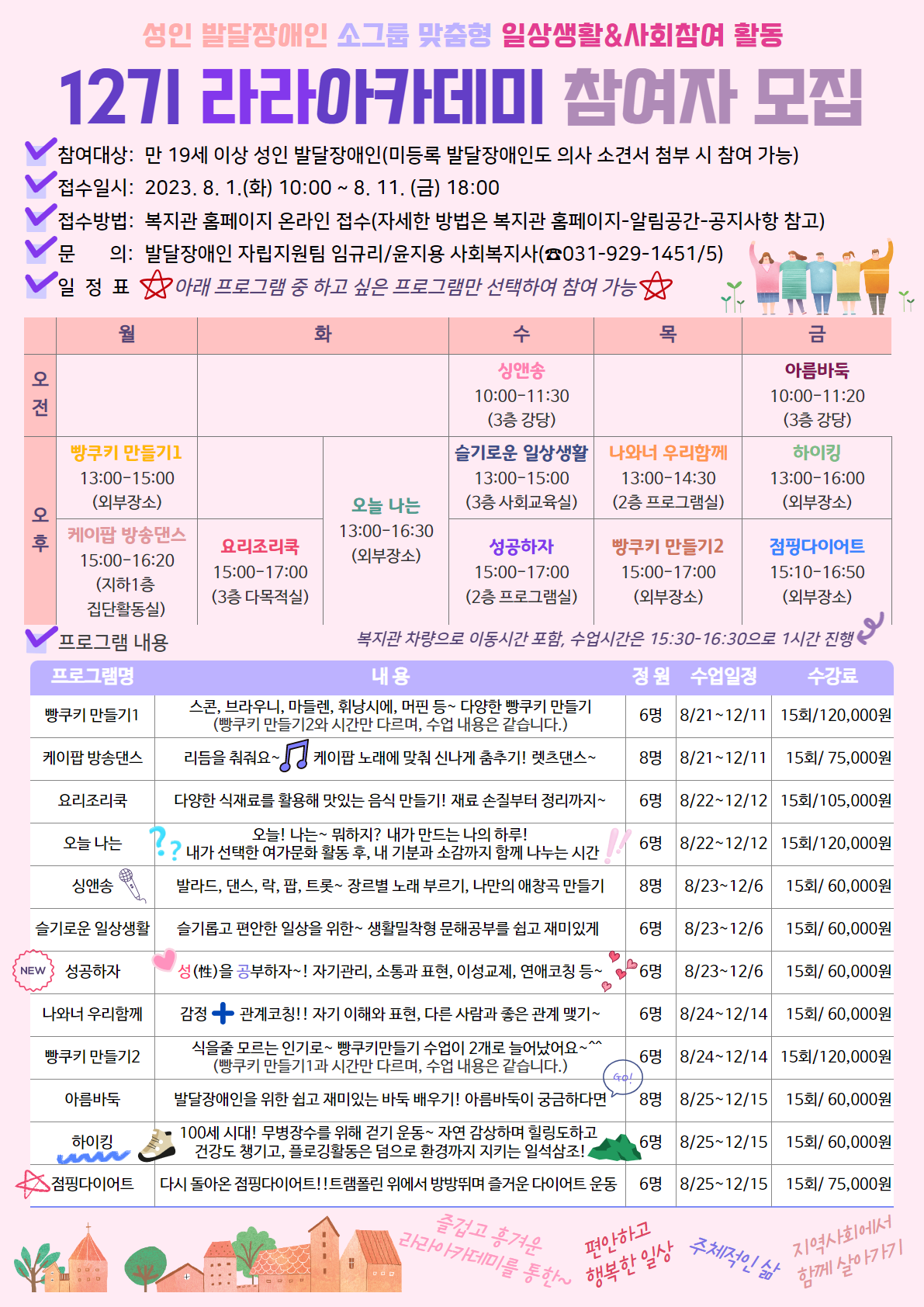 -접수방법: 복지관 홈페이지를 통한 온라인 선착순 접수 (복지관 홈페이지 참고)
