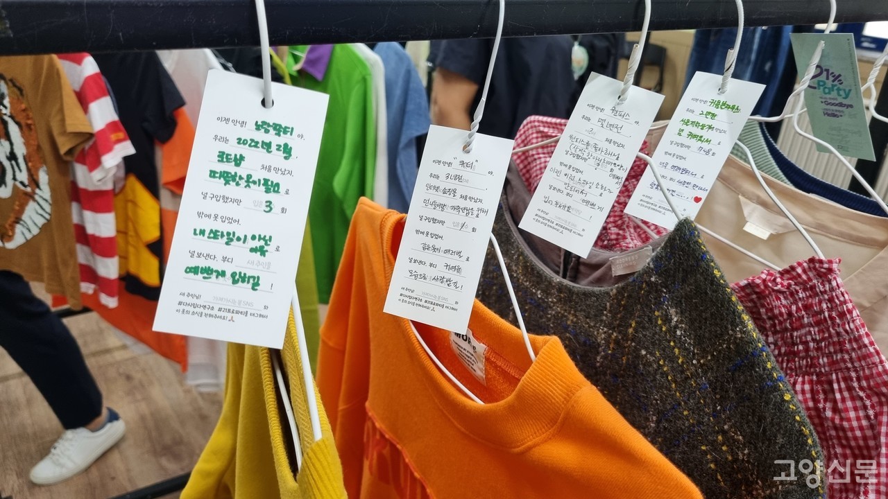 [고양신문] 고양YWCA는 18일 ‘21퍼센트 의류교환파티’를 열었다. 파티 참가조건은 안 입는 옷 지참. 안 입는 옷 5벌을 가져오면 그 수만큼 다른 옷으로 바꿔갈 수 있다. 파티장에는 다양한 옷이 걸려있고 참가자들은 마음에 드는 옷을 입어보면 주변에서 “딱 주인이네”라며 호응을 해줬다. 한 참가자는 이 옷의 이력, 남기는 말을 적어 옷과 함께 옷걸이에 걸어두고 마음에 드는 다른 옷으로 바꿔가느라 분주한 모습이었다.