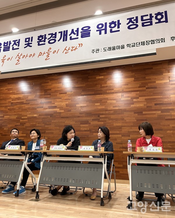 7일, 도래울마을 학교단체장협의회(회장 백향운)가 주관하고 보듬정서코칭상담센터가 후원한 ‘도래울마을 학교단체장협의회 정담회’가 흥도초등학교 시청각실에서 개최되었다. ‘도매울마을의 교육발전 및 환경개선을 위한’ 이번 행사는 도래울마울 주민들과 학부모들의 참여 신청을 받았고, 심상정 국회의원을 비롯해 김선미 흥도동장과 시도의원들을 초대해 이 지역 교육관련 현안에 대해 협의하고 질의하는 시간이 되었다.