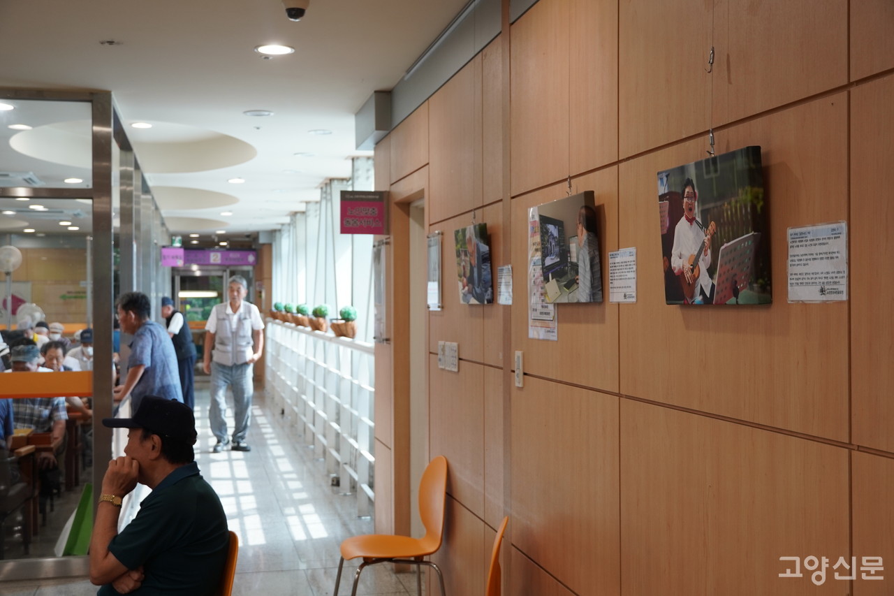 노인들이 직접 찍고 설명도 덧붙인 사진 16점을 복지관 2층 로비부터 복도 곳곳에 걸어 지나다니는 모두가 볼 수 있게 했다.