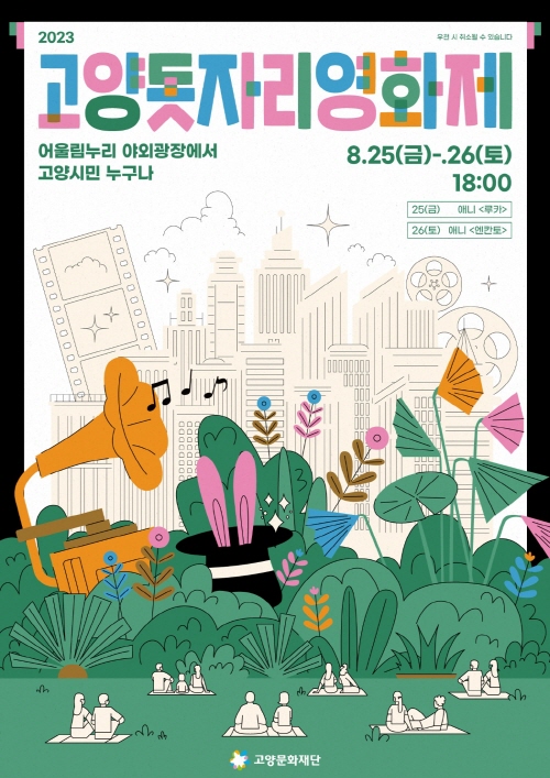 [고양신문] 고양문화재단 고양영상미디어센터가 25일(금)과 26일(토) 양일간 고양어울림누리 광장에서 가족, 친구와 함께 즐기는 고양돗자리영화제를 진행한다.