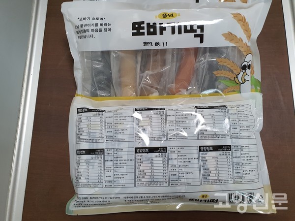 그가 출시한 '풍년 또바기떡'은 콩비지, 누룽지, 서리태, 팥, 검정깨, 떡볶이 등 6가지 맛이 난다. 1개 70g으로 손가락 길이의 크기에 식품포장지로 개별포장해 6개가 한 세트로 구성됐다. 포장지 뒷면에는 영양정보가 세심하게 인쇄돼 있다.