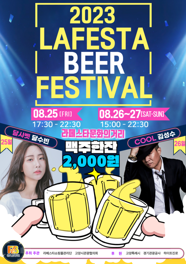 [고양신문] 저녁 공기가 조금씩 선선해지는 늦여름 시원한 맥주를 즐길 수 있는 2023라페스타비어페스티벌이 오는 25일(금)부터 27일(일)까지 3일간 일산동구 라페스타 문화의거리에서 그 막을 올린다. 2023라페스타비어페스티벌은 2018년 고양시 지역상권 활성화를 목표로 출발한 고양시의 대표적인 지역축제 중 하나로 지역 소상공인이 주도적으로 참여한다.