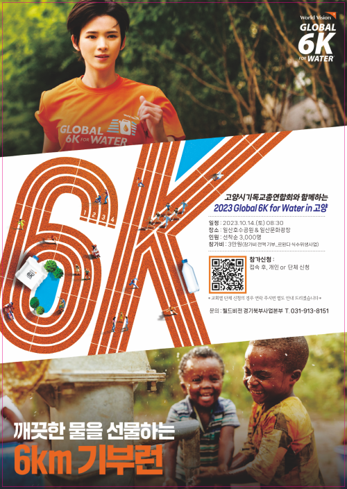 [고양신문] 가족들이 마실 물 한모금을 얻기 위해 매일 평균 6㎞의 먼 거리를 걸어야 하는 아프리카 아이들. 아프리카 아이들에게 깨끗한 물을 선물하기 위한 달리기가 올해도 희망찬 시동을 건다. 국제구호개발 NGO 월드비전(회장 조명환)이 올해로 6회를 맞는 ‘2023 글로벌 6K 포 워터 러닝(Global 6K for Water러닝, 이하 G6K러닝) 캠페인 참가자를 9월 24일까지 모집한다.