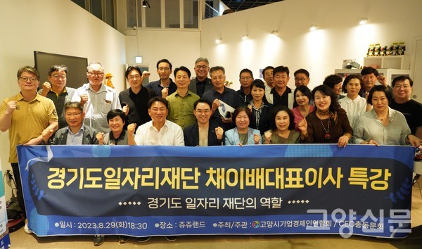 [고양신문] 고양시기업경제인연합회 CEO리더스 총동문회(회장 오준환)가 <명사초청강연> 첫 프로그램으로 채이배 경기도일자리재단 대표를 초청해 ‘경기도일자리재단의 역할’이라는 주제로 특강을 열었다. 30일 쥬쥬랜드에서 열린 이날 행사에는 40여 명의 동문회원들이 참석해 채 대표의 강연을 경청했고, 남운선 경기도일자리재단 북부사업본부장, 문재호 고양시의원, 김인배 고양시기업경제인연합회 사무국장이 자리를 함께했다.