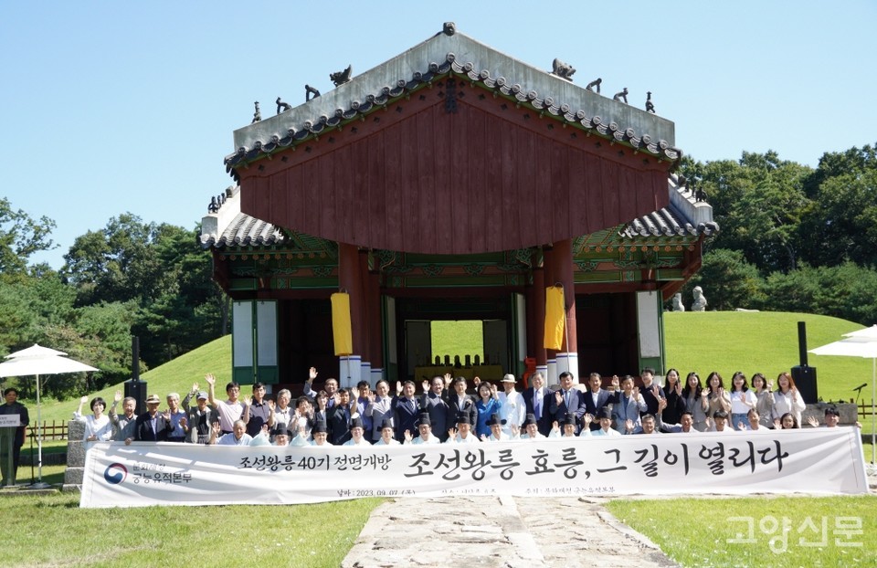[고양신문] 조선왕릉 40기 중 유일하게 미개방 능으로 남아있던 서삼릉 효릉(孝陵)이 드디어 55년간 닫혔던 빗장을 활짝 열었다. 7일 문화재청 궁능유적본부 주관으로 진행된 고유제(告由祭)를 시작으로 효릉이 개방됨으로써 18개 지역에 흩어져 있는 조선왕릉 전체가 관람객의 발길을 맞게 됐고, 2009년 유네스코 세계유산 등재의 후속 조건이었던 ‘조선왕릉 40기 전체 개방’ 약속도 14년 만에 비로소 실현됐다.