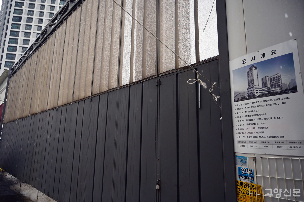 그러나 이 복합커뮤니케이션센터는 이동환 고양시장 취임 직후인 작년 7월 공사가 중단돼 현재까지 재개하지 않고 있다. 올해 12월 말까지 공사 완료예정이었지만 아직까지 터파기 공사조차 이뤄지지 않고 있다. 사업추진 3년이 지났음에도 삽을 뜨지 못한 이유에 대한 궁금증은 인근 주민들을 중심으로 증폭되고 있다.