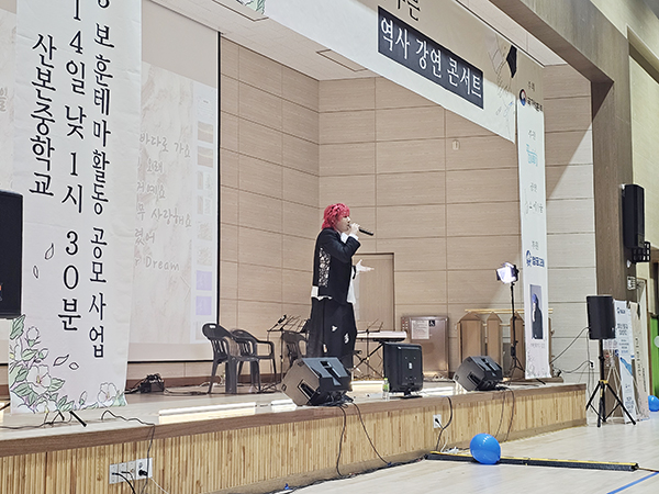 [고양신문] 청소년·청년들의 꿈을 이루는 사람들 비영리민간단체 꾸미루미(대표 김성애, 일산서구 대화동)가 14일 경기 군포시 산본중학교(교장 이관한)에서 국가보훈부의 2023 보훈 테마 활동의 하나로 ‘꼬리에 꼬리를 무는 역사콘서트’를 진행했다.