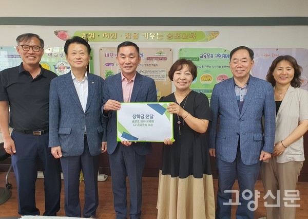 [고양신문] 유매화(61세)씨는 친정어머니 기일과 자신의 환갑을 맞아 송포초등학교(교장 한경택)에 장학금(학교발전기금)을 기탁했다. “근래 부모님이 물려주신 땅이 팔리고 올해 환갑을 맞아 여행 대신 의미있는 일을 하고 싶었다"는 유씨는 "나라가 잘 되려면 배워야 한다는 친정어머니(고 윤금순씨)의 생전 뜻에 따른 것"이라고 소개했다.