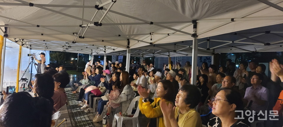 [고양신문] 전통공연 연주단체 ‘ᄉᆞᄆᆞᆺ디’가 펼치는 국악 월드뮤직 콘서트 <2023 도깨비 난리굿판> ‘사맛디-아니한가’가 20일 일산서구에 자리한 고양문화원 야외광장에서 열렸다. 가을비가 그쳤다 내리기를 반복한 고양문화원의 야외광장에는 전통 솟대와 장승 예술가 김대현의 작품인 부리부리한 얼굴의 장승이 우뚝 솟아 눈길을 끌었다.