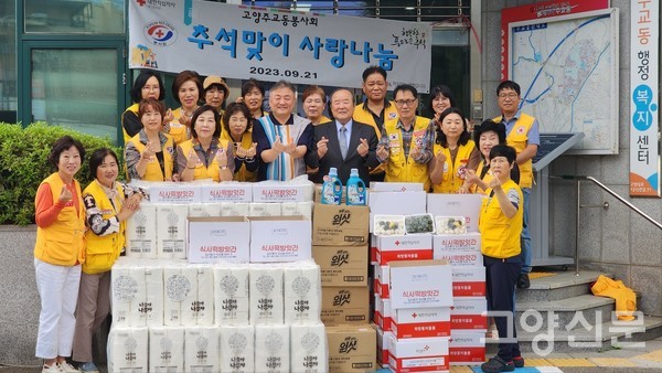 [고양신문] 적십자 고양주교동봉사회는 21일 주교동 행정복지센터(동장 정용호)에서 추석맞이 사랑나눔 행사를 실시했다. 지난 2월 원당봉사회와 배다리봉사회 그리고 주교동봉사회가 통합된 이래 이날 함께 명절맞이 봉사를 했다.